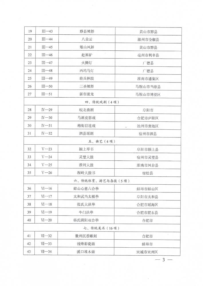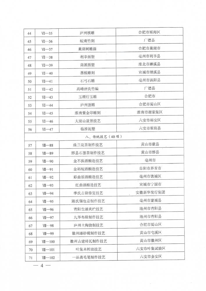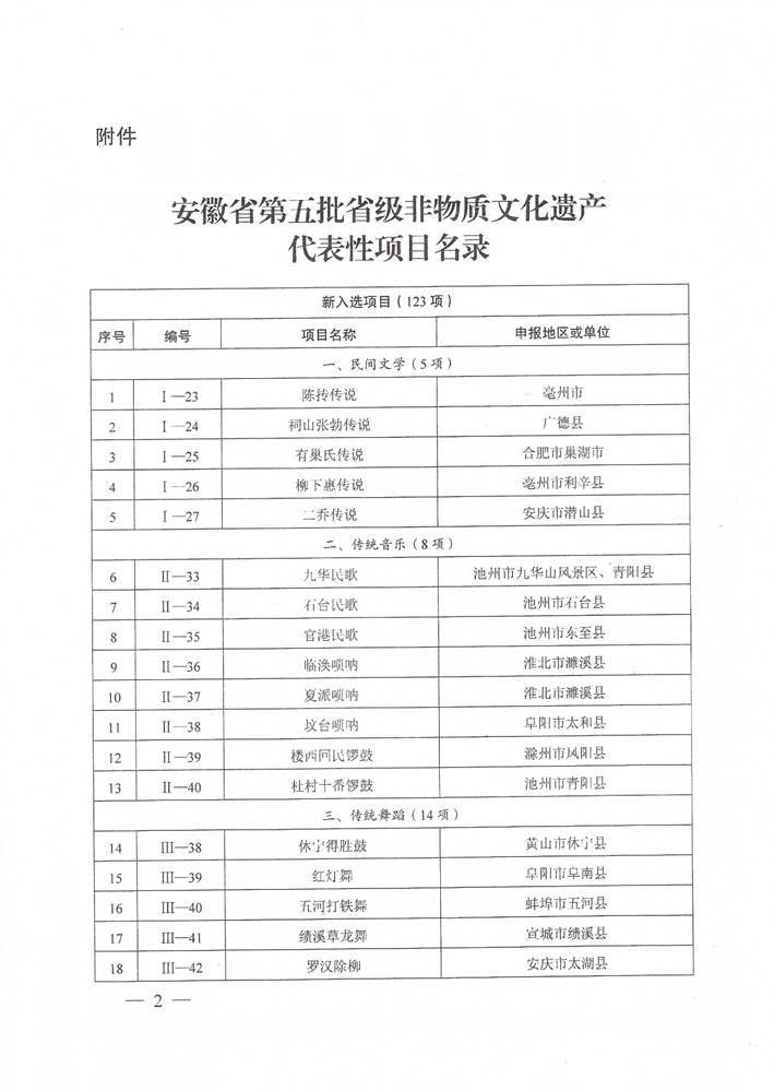安徽省人民政府关于公布第五批省级非物质文化遗产代表性项目名录的通知