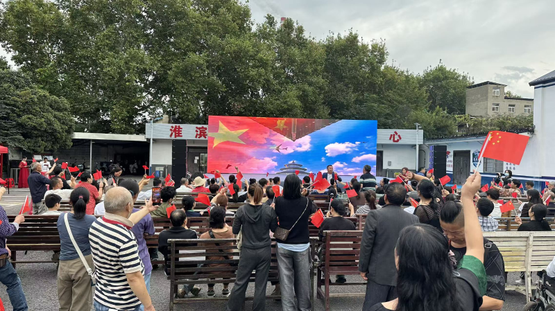 七十六载山河壮阔,齐心协力共谱华章。为庆祝中华人民共和国成立七十六周年,讴歌伟大祖国取得的辉煌成就,10月1日下午,由市文化和旅游局、田家庵区新时代文明实践中心主办,市图书馆(市少儿图书馆)承办的“亲爱的祖国 美丽的淮南”喜迎国庆诗歌朗诵音乐会在田家庵区淮河老街1952举行。