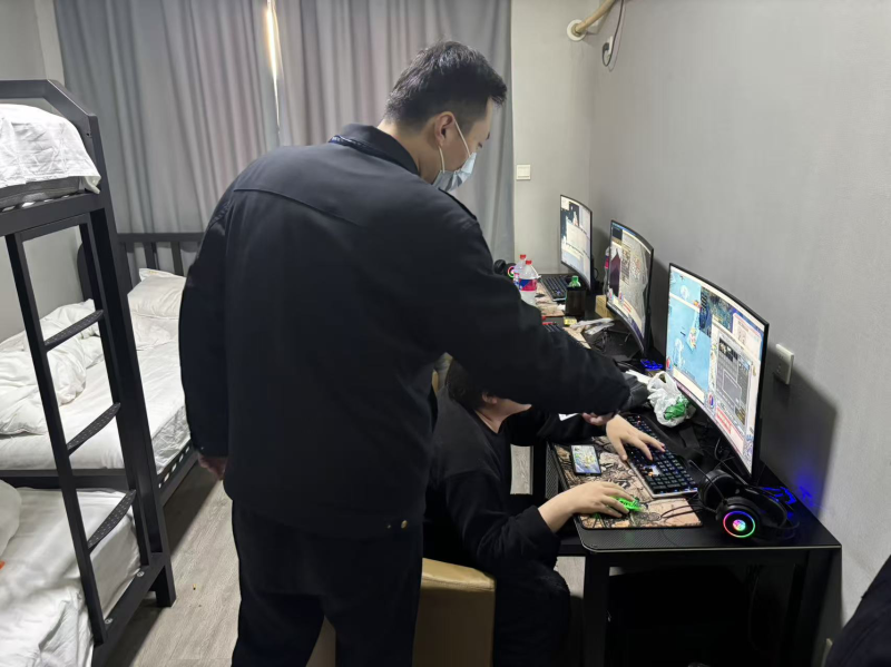 为落实文化和旅游市场今冬明春安全生产和执法监管专项行动,近日,我支队紧扣岁末年初、寒假开启的关键节点,联合谢家集区治安大队,对辖区内电竞酒店及网吧开展拉网式专项联合检查,以“时时放心不下”的责任感,为群众欢度新春佳节筑牢安全屏障。