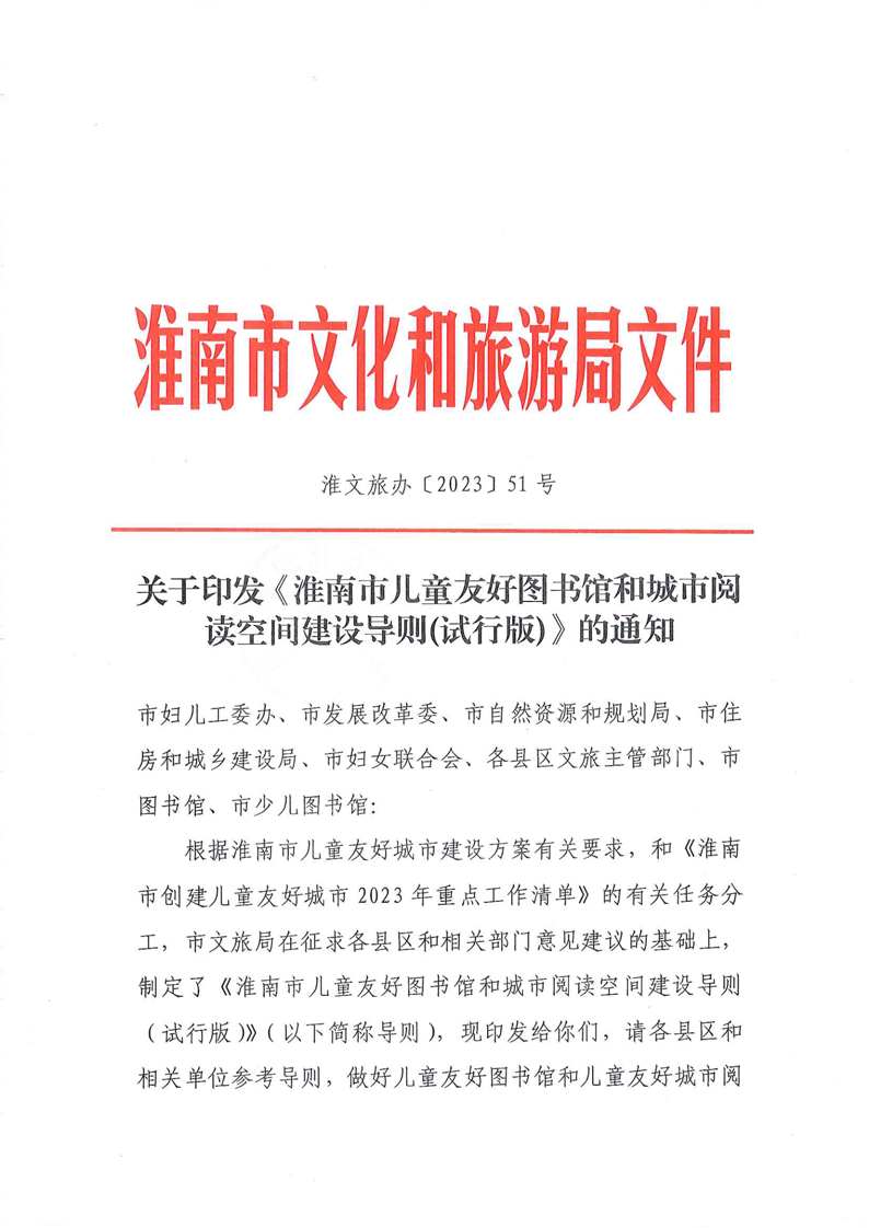 关于印发《淮南市儿童友好图书馆和城市阅读空间建设导则(试行版)》的通知