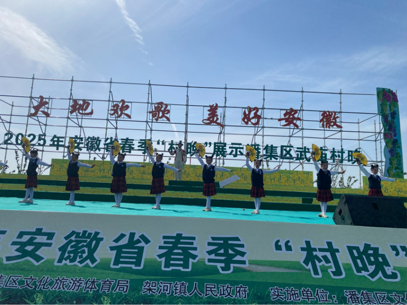 2025年4月30日,由安徽省文化和旅游厅指导的省级春季"村晚"示范展示活动在潘集区架河镇武庙生态园成功举办。本次活动以"大地欢歌·和美乡村"为主题,通过11个原创节目全景式展现新时代农民风采,线上线下累计吸引观众逾35万人次。
