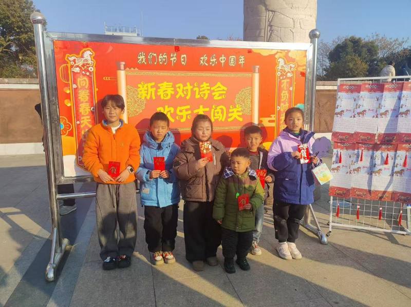 活动现场年味十足,闯关环节趣味盎然。"诗词接龙""飞花令""诗句填空"等关卡依次铺开,涵盖唐诗宋词、新春主题诗词等内容。同学们踊跃举手、快速应答,每闯过一关,大家便能收获精美奖品或新春红包,脸上洋溢着喜悦与自豪。此次活动以闯关形式让传统文化"活"起来,既激发了中小学生对古典诗词的热爱,又在书香雅韵中营造了喜庆祥和的新春氛围,实现了文化传承与节日欢乐的双向奔赴。